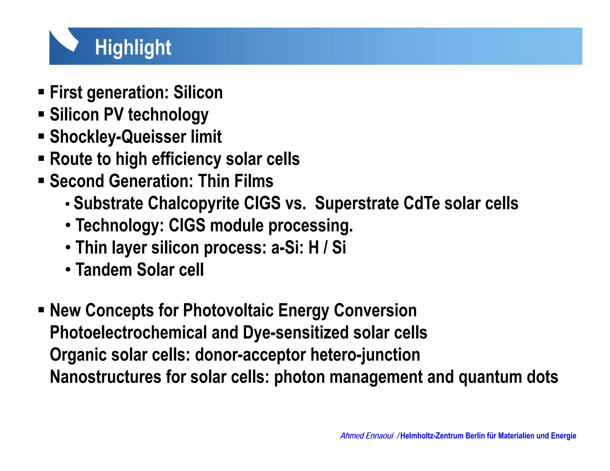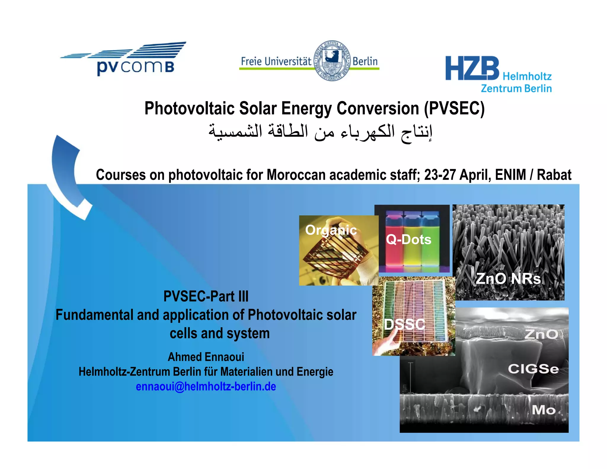 The document discusses photovoltaic solar energy conversion, focusing on advancements in solar cell technologies from first-generation silicon cells to third-generation solutions seeking to enhance efficiency and reduce costs. It highlights significant milestones in silicon production, manufacturing techniques, and research developments aimed at improving solar power efficiency through various innovative approaches. The content also reviews the impact of material science and quantum mechanics on photovoltaic technology and future directions in solar energy research.
