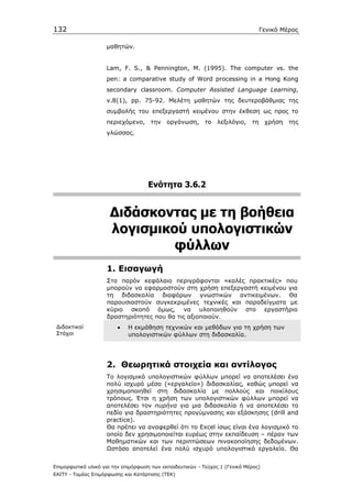 ενσωµάτωση των υπολογιστικών φύλλων στην τάξη.