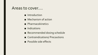 Enoxaparin is an anticoagulant medication from the class of low molecular weight heparins. It works by binding to antithrombin III to inhibit coagulation factors Xa and IIa, preventing fibrin clot formation. Enoxaparin has indications for treatment of conditions like unstable angina, DVT prophylaxis, and treatment of DVT. It comes with risks of bleeding and should be used cautiously in patients with bleeding risks or heparin-induced thrombocytopenia. Enoxaparin is administered via subcutaneous or intravenous routes.