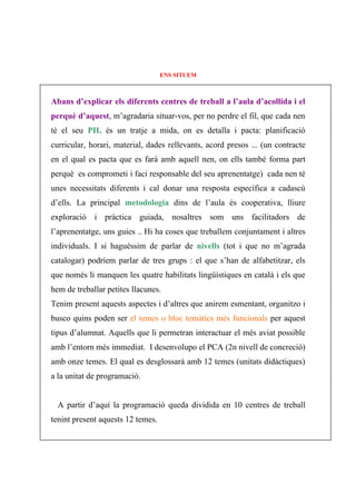 amb l’entorn més immediat. I desenvolupo el PCA (2n nivell de concreció)