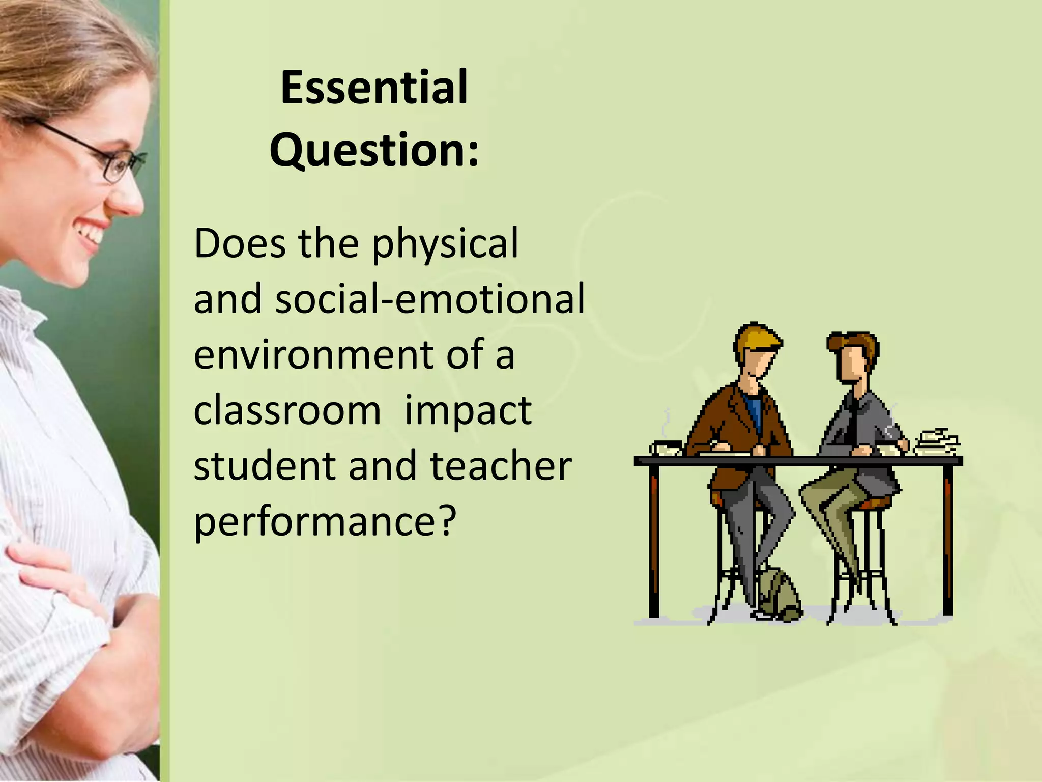 The document discusses how the physical and social-emotional environment of a classroom can impact student and teacher performance. It states that enriched environments increase the brain's ability to connect and learn, while impoverished environments have the opposite effect. Enriched physical environments are described as attractive, engaging, and changing, while impoverished ones are unattractive, non-engaging, and unchanging. Enriched social-emotional environments are characterized as student-centered, risk-free, supportive, and collaborative, whereas impoverished ones are tense, threatening, and competitive. The document emphasizes that most learning comes from the classroom environment, not just the curriculum.