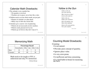The document discusses the national math crisis in the United States and ways to improve math education. It notes that only 42% of students taking the ACT test are ready for college algebra, and shares other statistics about unprepared students. It also discusses how math education is changing, with a greater focus on problem solving, reasoning and visualization over rote memorization and procedures. The document presents several materials that can be used to help students visualize mathematical concepts, such as number rods and spindle boxes.