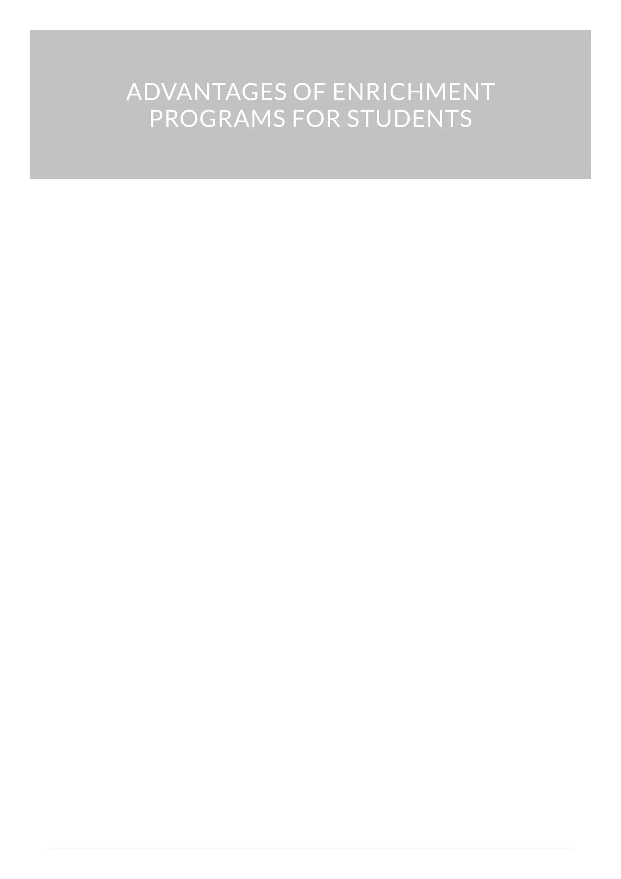 Enrichment programs provide interdisciplinary activities designed for students who find regular classes unchallenging, fostering engagement and deeper learning. These programs enhance academic performance, promote personal growth, and develop critical skills through various activities before or after school. Additionally, they create a safe environment for collaboration, creativity, and self-discovery, better preparing students for future academic rigor and interpersonal interactions.