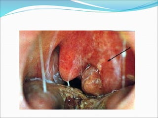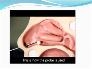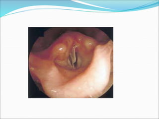 This document provides an overview of common acute ENT conditions that may be encountered in a casualty setting. It discusses tonsillitis, epistaxis, rhinitis, sinusitis, laryngeal cancer risk factors, angioedema, and foreign body obstruction of the esophagus and airway. Management strategies are outlined for each condition. It emphasizes the importance of early discussion with ENT specialists for any cases involving airway obstruction or stridor. Surgical cricothyroidotomy and tracheotomy are described as emergency procedures to secure the airway if needed.