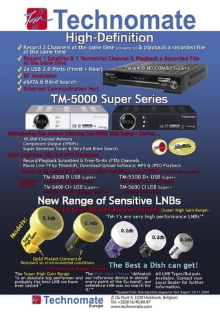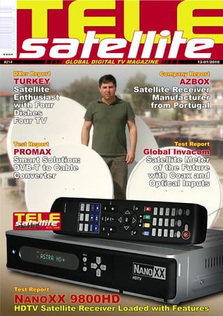 The Nanoxx 9800HD is a fully-featured HD satellite receiver with an unprecedented number of features packed into a compact design. It has dual satellite tuners, numerous video and audio outputs including HDMI, USB, eSATA, and Ethernet ports. The receiver impressed in testing with its elegant design, extensive channel sorting and listing capabilities, 25 language options, and exceptional audio quality.