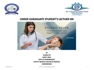 This document provides information on a lecture about enteric fever: