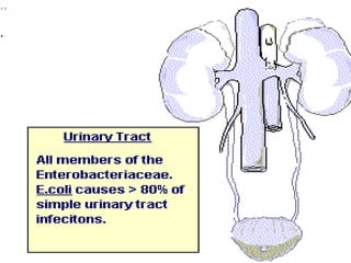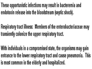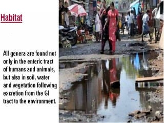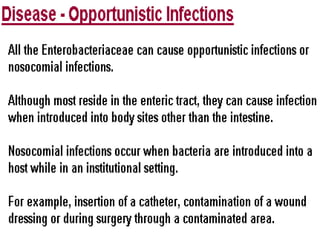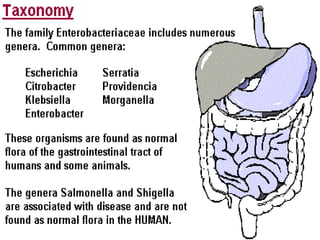 This document provides information on Enterobacteriaceae and pathogenic E. coli:
