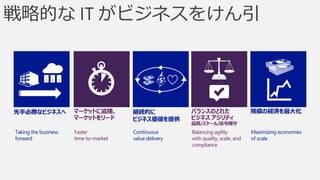 技術的な意思決定は IT 部門 技術的な方向性は、経営者層 IT 計画と投資は、顧客中心に