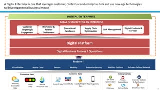 1. The document discusses setting up an Enterprise Digital Lab to facilitate digital transformation across various areas of impact for an enterprise like customer targeting and engagement, supply chain optimization, and operational excellence.