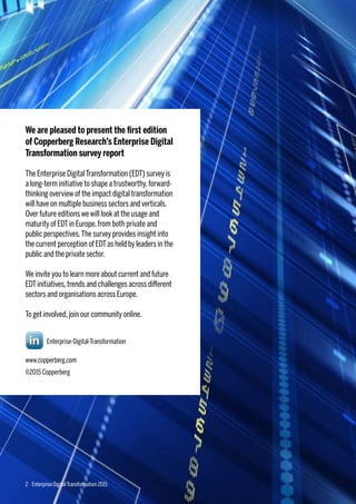 The survey report provides insights into perceptions of digital transformation among leaders in Europe's private and public sectors. Some key findings: