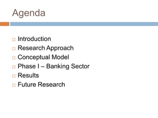 This document presents a case study on enterprise information systems security within the banking sector, highlighting internal threats and the development of a conceptual model. Key insights from interviews with information security officers emphasize the importance of security policy, awareness, access control, and top-level management support. Future research will involve broader surveys and potential collaborations.