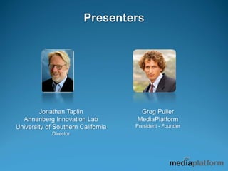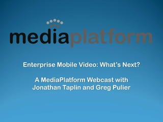The document discusses the future of enterprise mobile video, focusing on industry trends such as increased flexibility in service deployment, the impact of digital transitions on cable TV, and the shift towards online and interactive advertising. It highlights the growing importance of mobile video and social networking, emphasizing that mobile will surpass previous trends in media consumption. Key challenges for businesses include integrating advertising capabilities across various platforms and managing content delivery through both wired and wireless means.