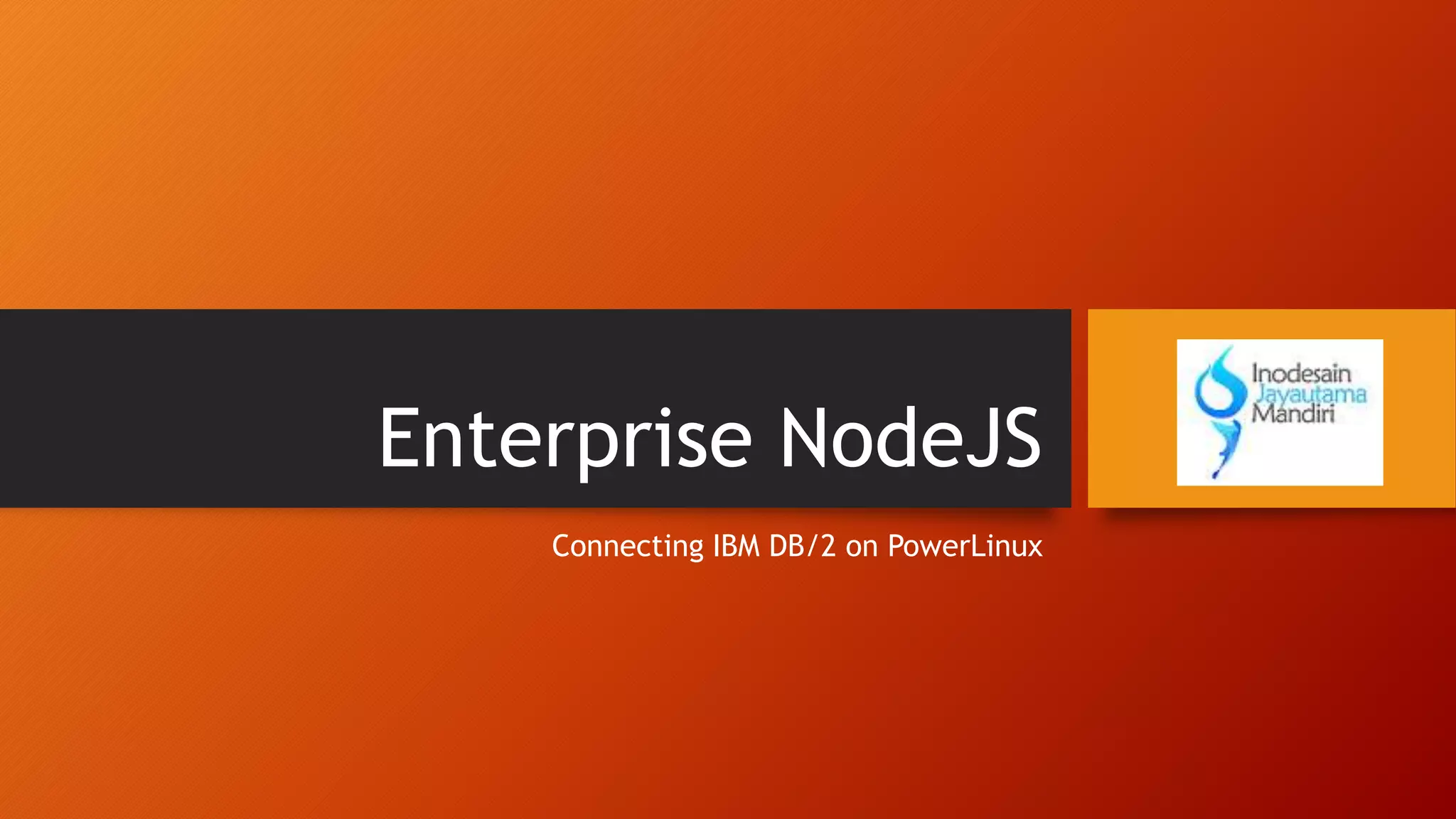 The document discusses connecting to an IBM DB/2 database on PowerLinux from a Node.js application. It covers installing the ibm_db npm module to interface with DB/2, connecting to a database, querying a table to retrieve and output data, and closing the connection. The document also briefly mentions preparing for IoT, client/server Javascript, and a joke.