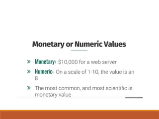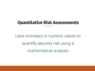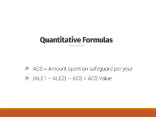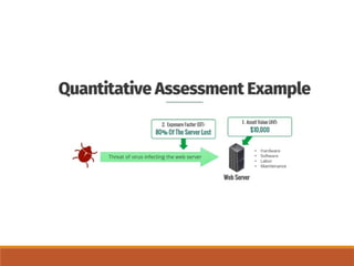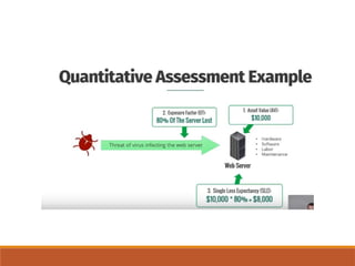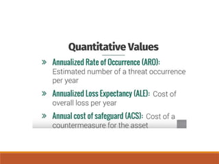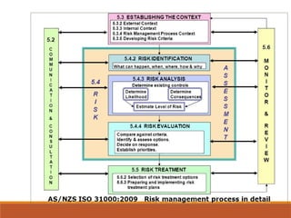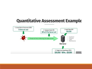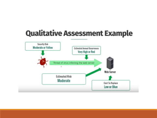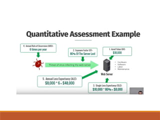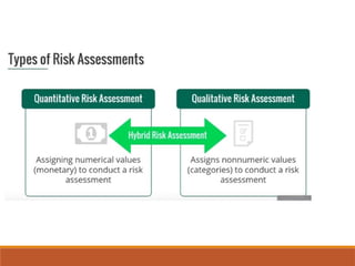 The document outlines definitions and distinctions between risk and issue, emphasizing the need for effective risk management in organizations. It discusses the risk management cycle, including risk identification, assessment, and mitigation strategies, while identifying various sources and methods of risk assessment. Additionally, it highlights the importance of proactive approaches to managing risks, the role of information security, and the necessity of maintaining proper risk documentation and reporting.