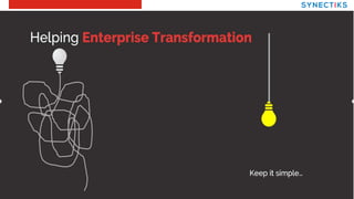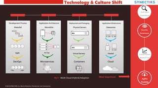 This document contains confidential and proprietary information from Synectiks. Any pricing or terms are non-binding and subject to change. The data may not be reproduced or distributed without Synectiks' consent. It then provides an overview of Synectiks' expertise in areas like microservices, DevOps, cloud services, monitoring and analytics solutions using open source frameworks and products.