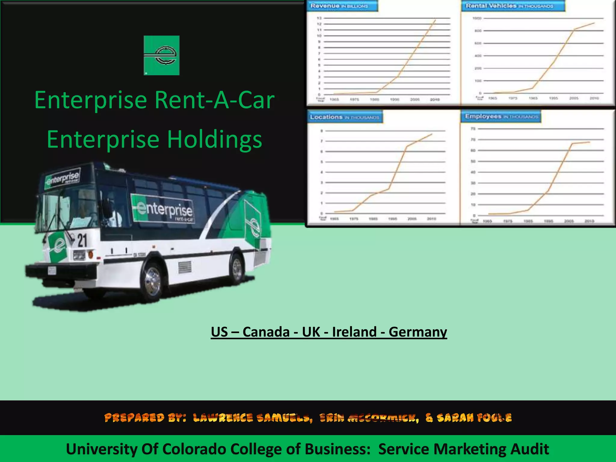 Enterprise Rent-A-Car is a large car rental company operating in the US, Canada, UK, Ireland, and Germany. The document discusses Enterprise's value-added services, history, key concepts around service differentiation and the service profit chain. It provides recommendations such as keeping customer records for 3 years, integrating new technologies, improving service encounters and training, and extending service settings.