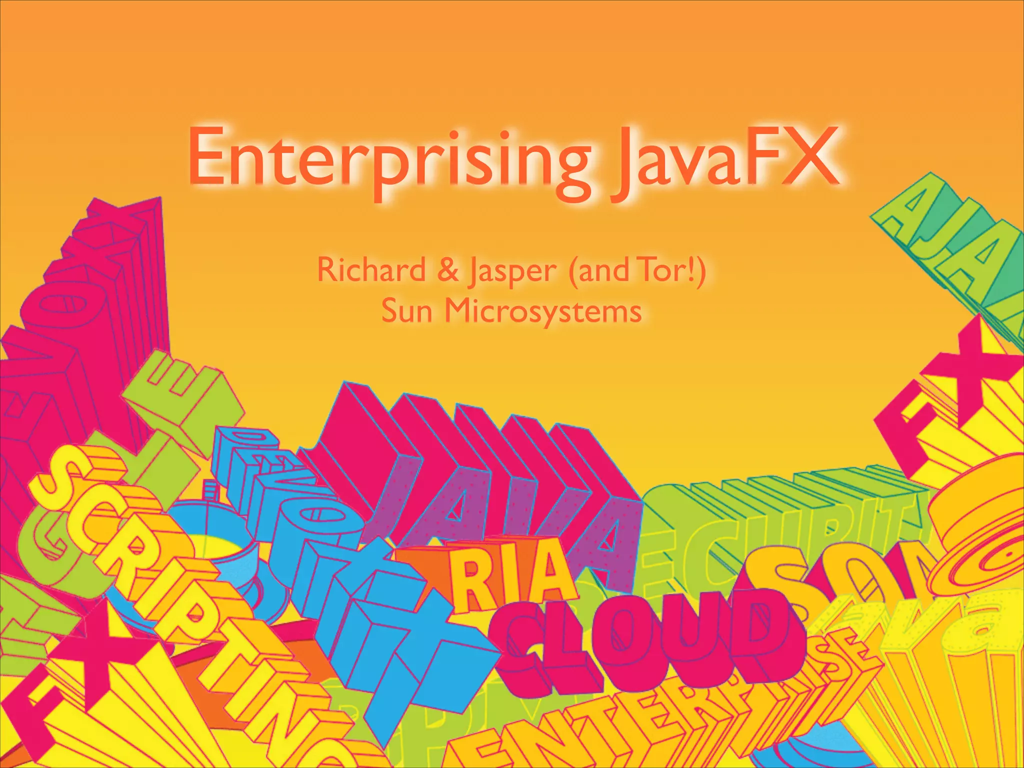 This document summarizes a presentation by Richard and Jasper on using JavaFX in enterprise applications. The presentation covers using web services and background threads in JavaFX, custom tasks for threading, and the available JavaFX controls like buttons, sliders and list views. It also discusses styling controls with CSS and regions, as well as tooling support through the JavaFX Authoring Tool. The speakers are core engineers at Sun Microsystems who worked on JavaFX and its controls and scene graph.