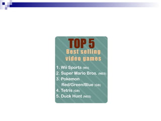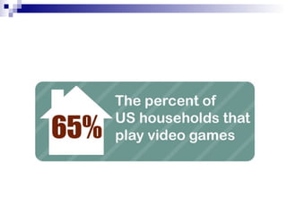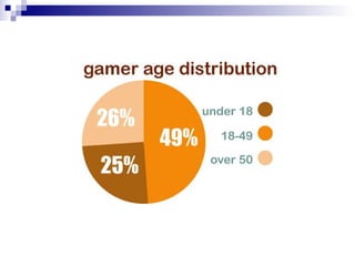 The document discusses trends in gaming and entertainment brought about by technology. It recognizes that virtually every area has been impacted by digital technology, with further changes possible. Gaming has become more sophisticated and allows for online communities and virtual worlds. While games can encourage violence, the Wii has shifted usage. Music is increasingly downloaded illegally and legally instead of bought on CDs, but live concerts are increasing. New technology may be growing live music's appeal. Artists now rely on new distribution lines and revenue streams with the loss of songs' intrinsic value.