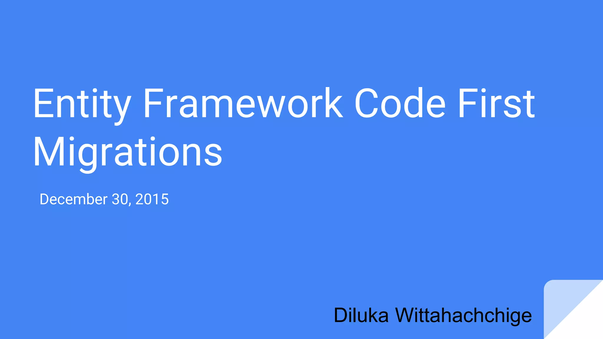 The document discusses Entity Framework Code First Migrations, aiming to enable software engineers to develop models without needing to use a designer or XML mapping file. It details steps for initial database conversion to migration scripts, seeding data, and automatic migrations, as well as the necessary configurations for deployment and continuous integration. Key commands and potential challenges in team environments are also highlighted, along with useful resources for further information.