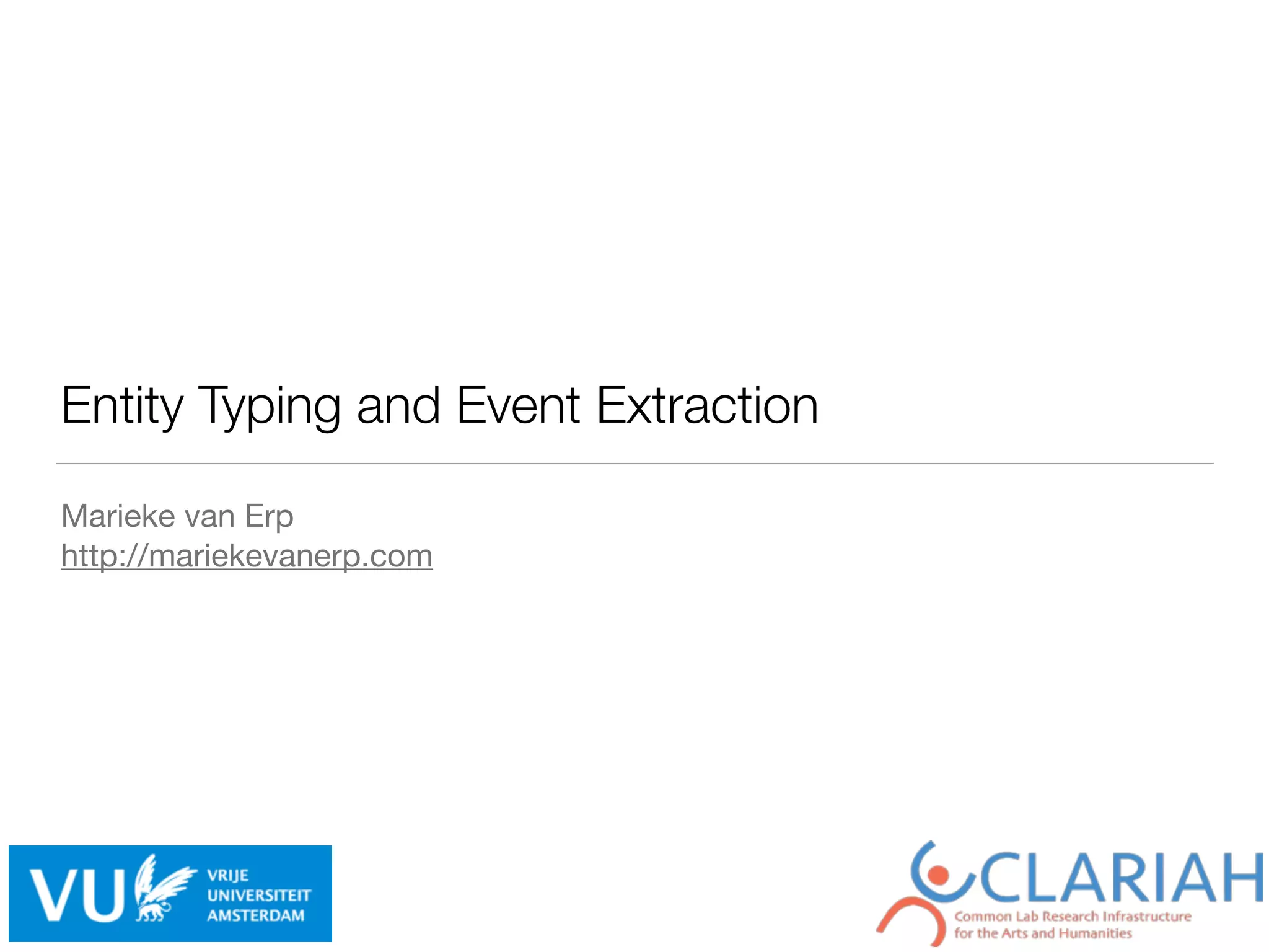 The document discusses entity typing and event extraction, which involve classifying entities and recognizing events in text. It highlights the value of linking entities to background knowledge for refined querying and the ability to generate event descriptions through an understanding of participants and contexts. It also outlines ongoing research and the integration of various resources for semantic analysis and querying capabilities.