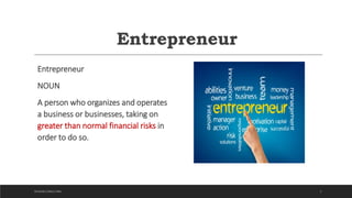 This document discusses financial statements and how they relate to entrepreneurial businesses. It provides definitions for key financial terms like assets, liabilities, equity, income statement, balance sheet, and cash flow statement. It explains the purpose and components of various financial statements. The document also discusses financial analysis metrics for evaluating a company's profitability, solvency, and efficiency.