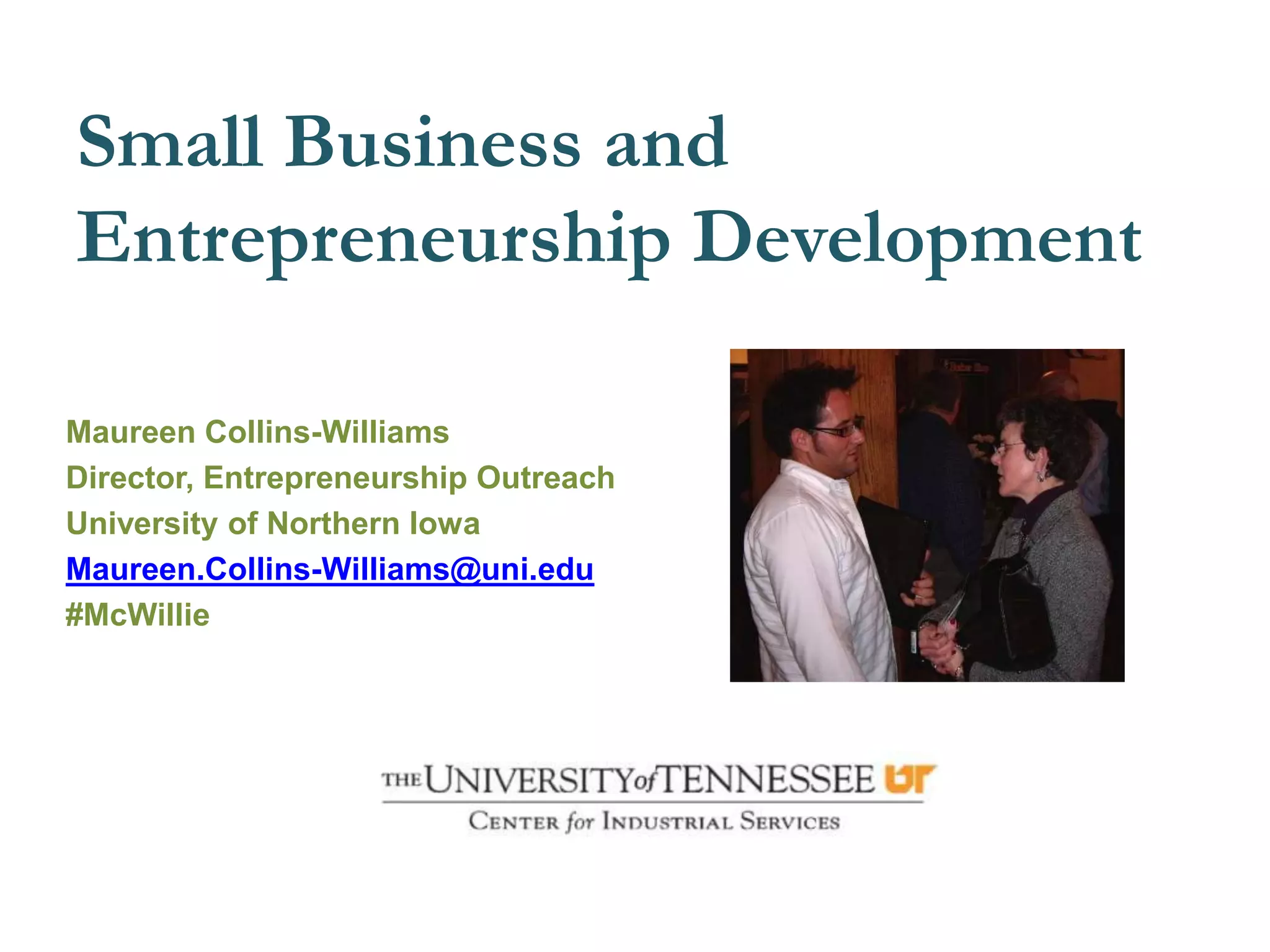 The document discusses different types of entrepreneurs from micro-enterprises to venture companies and the various needs of entrepreneurs at different stages. It outlines the key elements needed to support entrepreneurs, including business assistance, networks, capital, and community infrastructure. The document advocates for creating an entrepreneurship support system by leveraging federal, state, and local assets that brings together all the necessary resources.