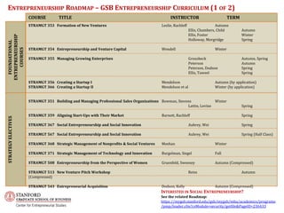 The document outlines the entrepreneurship roadmap for students at Stanford's Graduate School of Business, detailing resources, events, internships, and entrepreneurial courses available during the 2011-2012 academic year. It emphasizes engaging with various student clubs, attending events, seeking advisory sessions, and participating in specialized courses to enhance entrepreneurial skills and opportunities. The roadmap serves as a comprehensive guide for students interested in pursuing entrepreneurship and related activities throughout their studies.