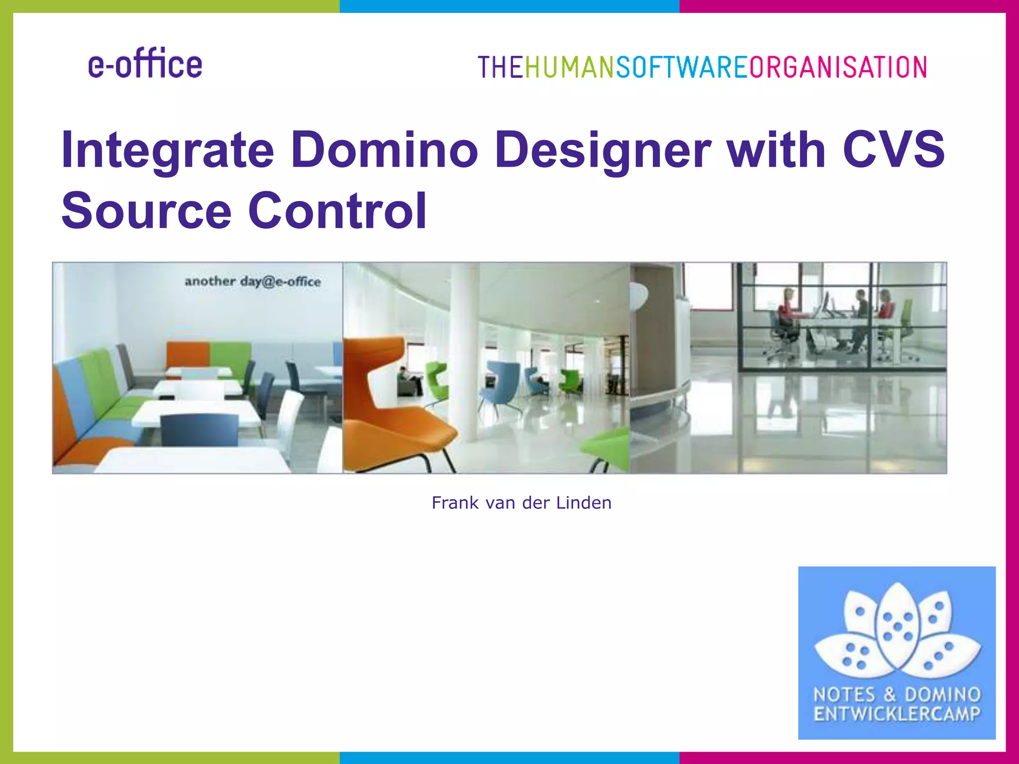 This document discusses integrating Domino Designer with CVS source control. It covers installing CVS connectors, setting up a connection to a CVS repository, connecting databases to source control, submitting and getting changes from the repository. It also discusses more advanced topics like branching and merging. The document provides helpful links for CVS and other source control connectors that can be used with Domino Designer.
