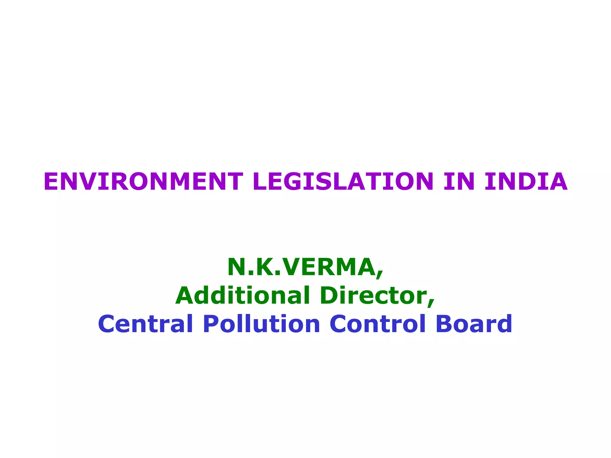 This document discusses environmental legislation and pollution control in India. It outlines several key Acts related to water, air, environment protection, and hazardous waste management. It describes the roles and functions of the Central Pollution Control Board and State Pollution Control Boards in advising the government, coordinating activities, enforcing standards, and managing pollution control programs. Standards are discussed as an important tool for controlling pollution at its source and balancing technical, economic, and environmental factors.