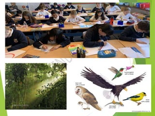 The document defines and describes the components of the environment. It states that the environment is made up of natural and human-made elements. The natural environment includes the lithosphere (land), hydrosphere (water), atmosphere (air), and biosphere (living things). It then describes each of these components in more detail. The document also discusses ecosystems as systems formed by the interaction of living organisms and physical factors. Finally, it notes that humans interact with and modify the environment to meet their needs through activities like agriculture and industry.