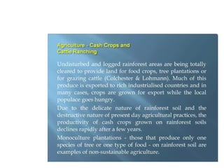 • The world’s growing population has been a primary cause of rain forest