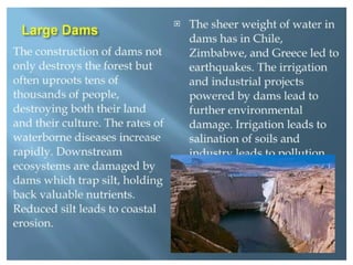consequences for humans and the environment, such as climate change, habitat loss,
