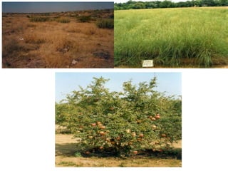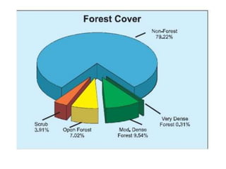 The document discusses the impacts of climate change and disaster management in India's semi-arid regions, particularly focusing on Telangana. It highlights the challenges posed by droughts, erratic rainfall, and urbanization, along with initiatives like the 'Telangana Ku Haritha Haram' aimed at increasing green cover. Various strategies for sustainable development, water management, and forest conservation are proposed to enhance resilience against climate change impacts.