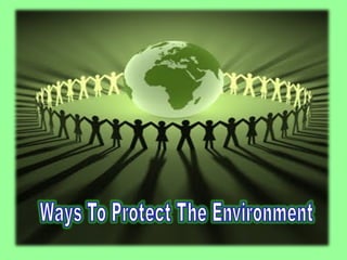 The document discusses various environmental issues including air pollution, water pollution, land pollution, climate change, deforestation, and desertification. It lists the group members working on the project and provides details on the causes and effects of different types of pollution. Major causes of deforestation mentioned are logging, mining, oil/gas extraction, cattle ranching, and agriculture. The causes of desertification include physical, biological, political, social, economic and cultural factors. Some ways to prevent environmental problems like global warming are reducing CFCs and waste burning, keeping the environment clean, planting trees, and using public transport.