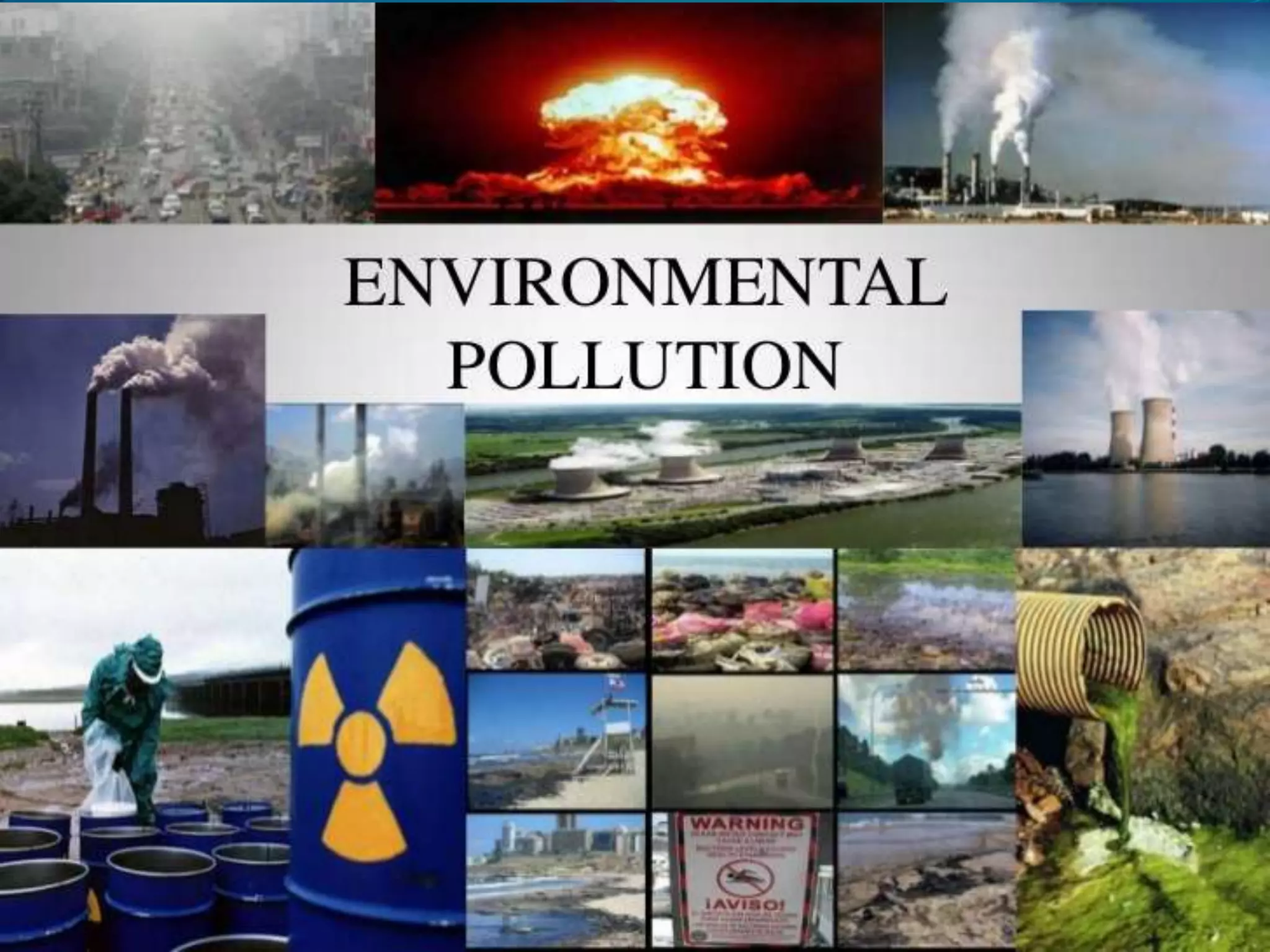 The document defines different types of pollution and their causes and effects, including air, water, land, and noise pollution. It provides introductions to each type of pollution, listing factors that contribute to them such as industries, vehicles, and construction. The effects on human health, plants, animals, and ecosystems are described. Suggestions for prevention include using public transportation, properly disposing of waste, and planting trees.