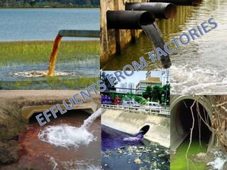 The document defines environmental pollution and describes its three main types: air, water, and soil pollution. It provides details on the causes and effects of each type of pollution. Air pollution is caused by emissions from vehicles, factories, and burning of fossil fuels, and can lead to acid rain, haze, health issues, and depletion of the ozone layer. Water pollution results from industrial waste, oil spills, and waste disposal in rivers and oceans, harming wildlife and spreading disease. Soil pollution is caused by industrial chemicals, mining, pesticides, and landfills, contaminating groundwater and reducing soil fertility.