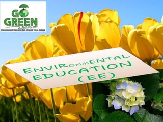 John McConnel founded International Earth Day in 1970 to address various environmental problems caused by human activity, including depletion of natural resources, land degradation, population growth, and species extinction. Environmental education aims to develop awareness of environmental issues and teach sustainable use of resources. It has evolved from early nature study and conservation education movements. Key developments included the 1970 first Earth Day, the UN Stockholm Conference, and the Tbilisi Declaration which outlined goals and principles of environmental education. EE is taught through various formal and informal methods to provide citizens with knowledge and skills for environmental problem-solving and decision-making.