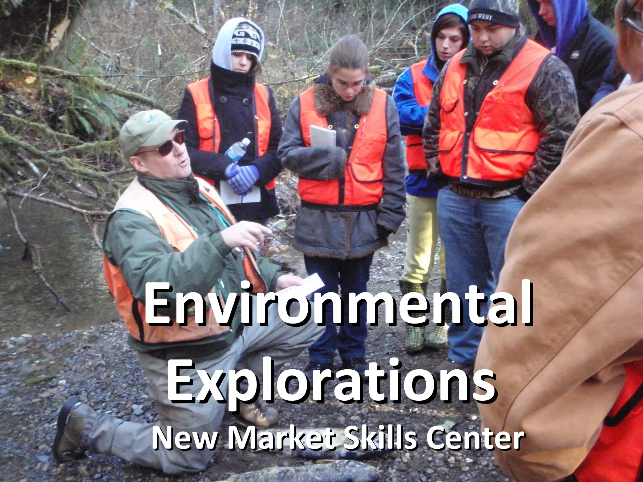 The document summarizes the curriculum for an environmental explorations class at New Market Skills Center from September to June. It is divided into monthly/bi-monthly sections focusing on different ecosystems and industries, including prairies and freshwater, salmon ecology, forests, shorelines and estuaries, and wildlife. Students conduct field research with various agencies and participate in restoration projects. They also complete class projects and a challenge course. The primary goals of the class are to introduce students to natural resource management careers, have them work with professionals, develop field and leadership skills, and gain experience to inform their future careers.