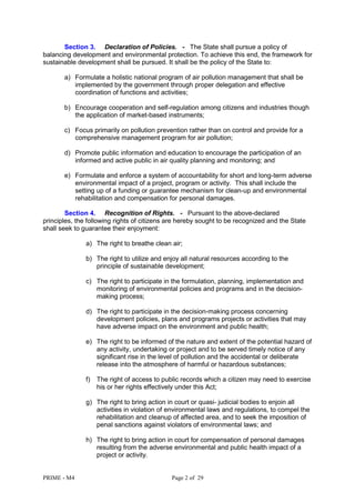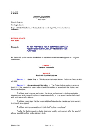 This document is the Republic Act No. 8749, also known as the Philippine Clean Air Act of 1999. Some key points: