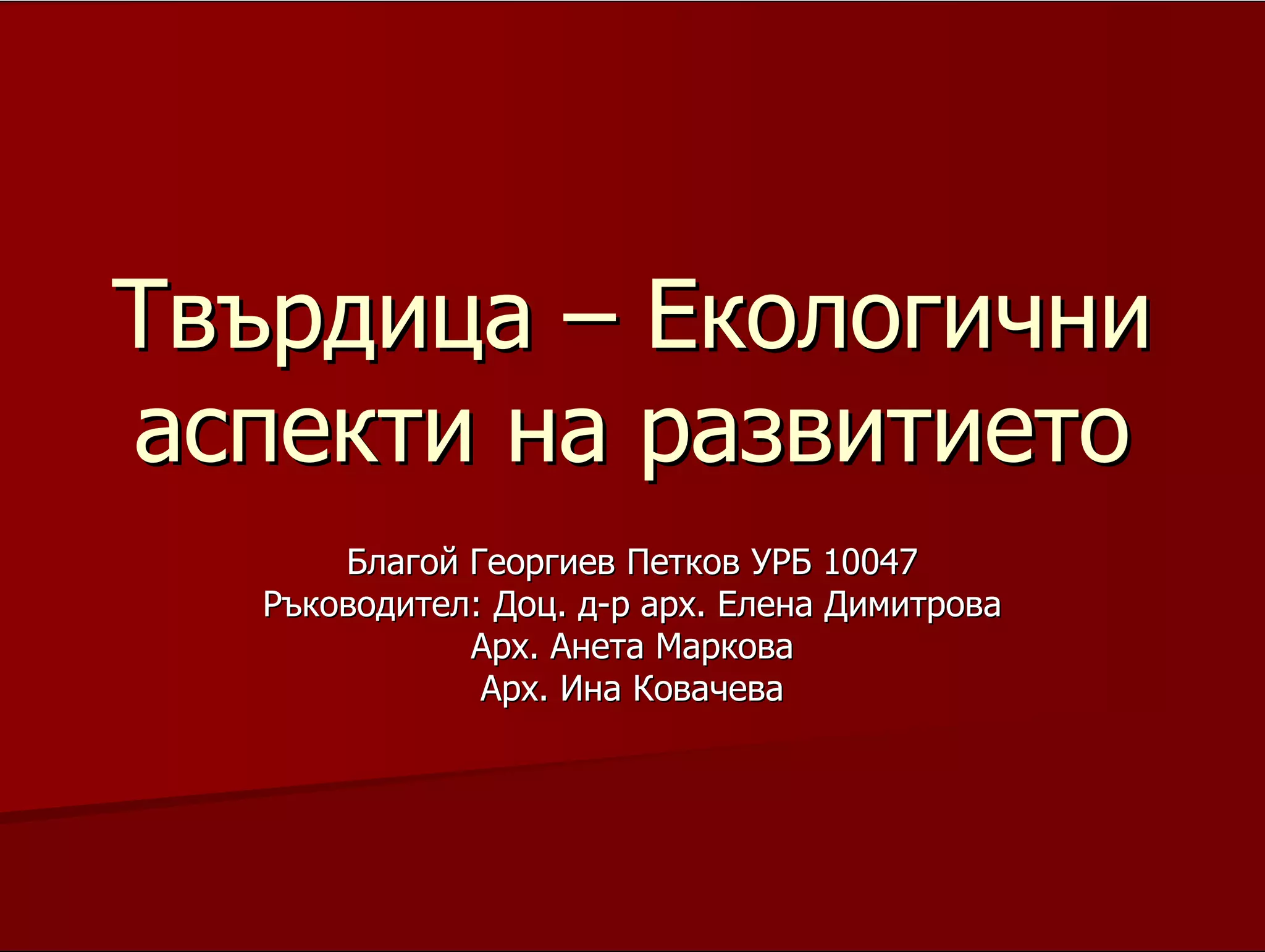 градчето за да бъде идеален пример за устойчиво развитие;