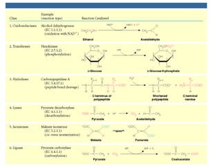 Chapter 5 discusses enzymes as catalysts that accelerate chemical reactions without altering equilibrium, significantly increasing product formation by lowering activation energy and enhancing reactant orientation. Enzymes are highly specific, producing products in yields exceeding 95% and are categorized into classes like oxidoreductases and transferases, based on their functions. The chapter also covers co-enzymes that assist enzymes and the principles of kinetics in understanding reaction rates and mechanisms.