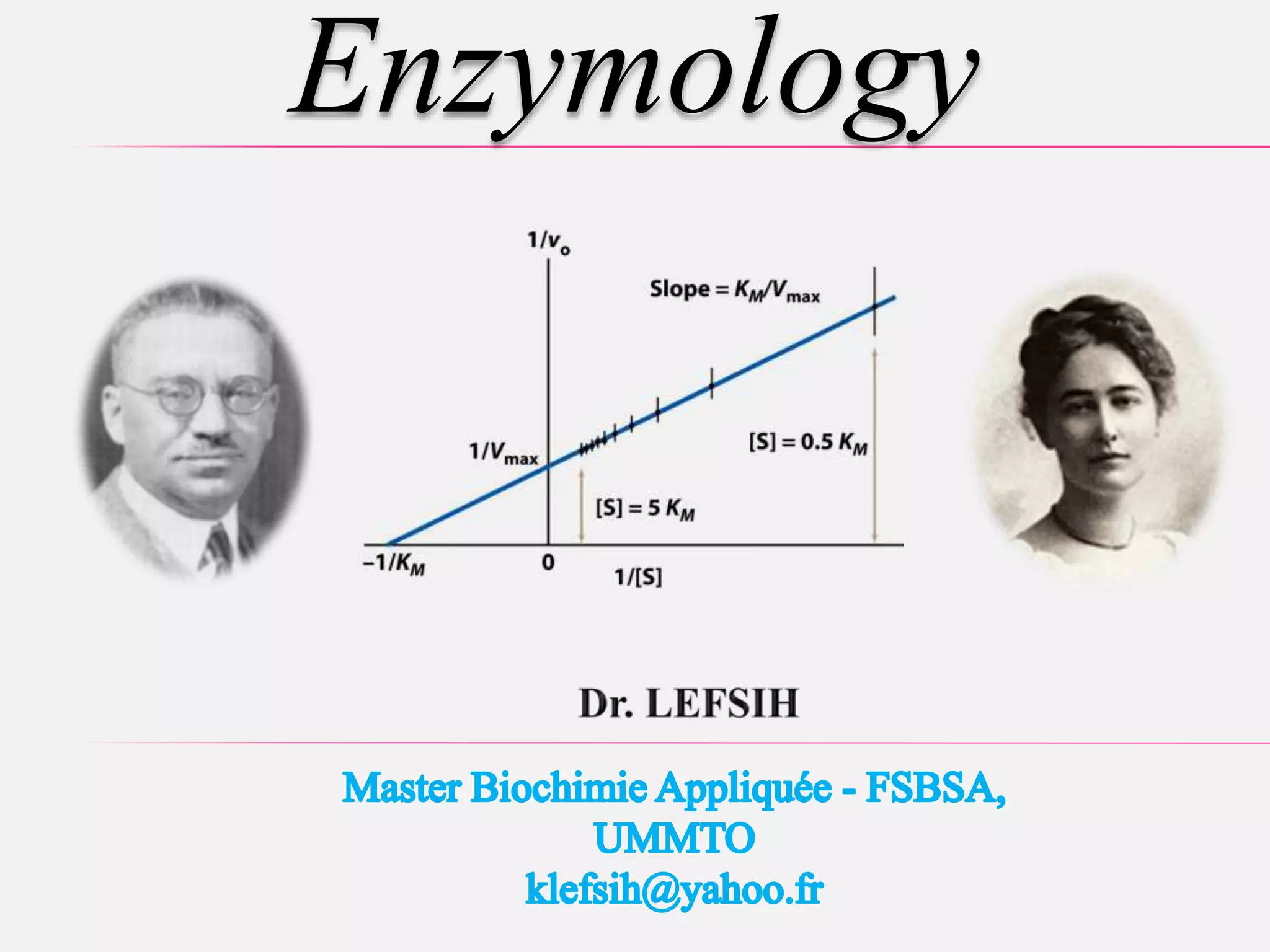 This document provides an overview of enzymology and enzymes. It discusses how enzymes are biological catalysts that accelerate chemical reactions in living organisms. Each reaction is catalyzed by one or more specific enzymes, which are proteins that recognize substrate molecules and facilitate their transformation. Enzymes play a key role in coupling exergonic and endergonic reactions to allow biochemical processes to occur under the constraints of thermodynamics. The document covers basics of enzyme kinetics, cofactors, classification, factors influencing enzyme activity such as temperature and pH, inhibition, and measurement of enzymatic activity.