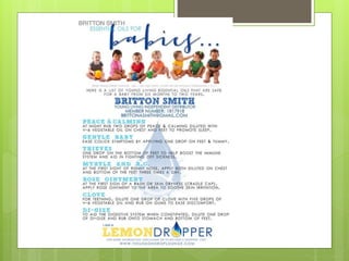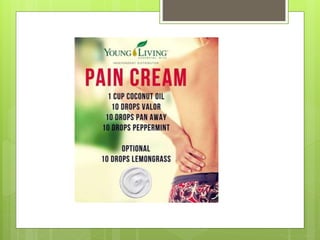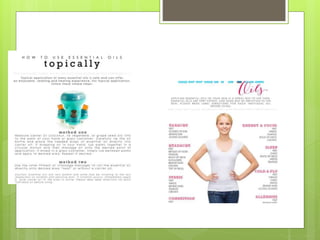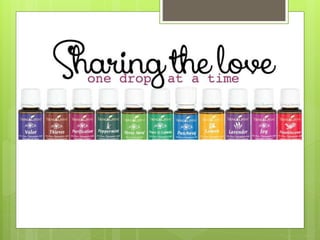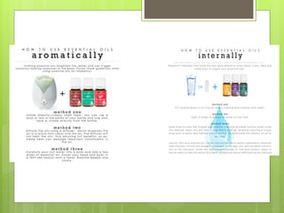 This document provides an introduction to essential oils through Young Living. It discusses why people use essential oils and how oils from Young Living work. Specifically, it highlights Young Living's "Seed to Seal" process. It promotes Young Living's Premium Starter Kit as the best way to get started with essential oils. The document answers frequently asked questions and provides information on popular individual oils like peppermint, lemon, lavender, and thieves. It aims to educate readers on the uses and benefits of different essential oils.