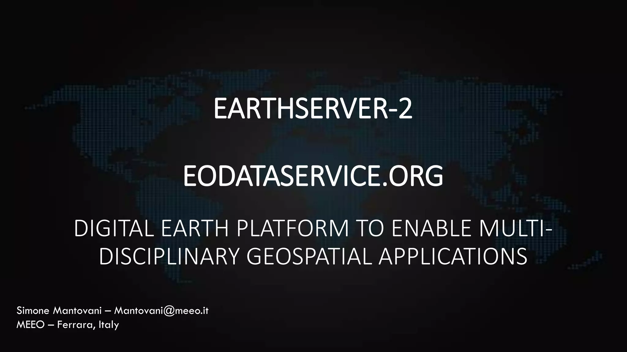 This document discusses the EarthServer-2 project, which aims to create a digital Earth platform for multi-disciplinary geospatial applications. The platform includes several data services that provide access to Earth observation data through standardized interfaces like OGC services. It allows users to access, visualize, subset, combine and process vast amounts of geospatial data simultaneously from multiple data sources. The platform is demonstrated through examples of using vegetation, precipitation and soil moisture data to study drought in Eastern Africa. It also discusses lessons learned from implementing the cube technology and providing access to data through various user interfaces tailored for different user groups.