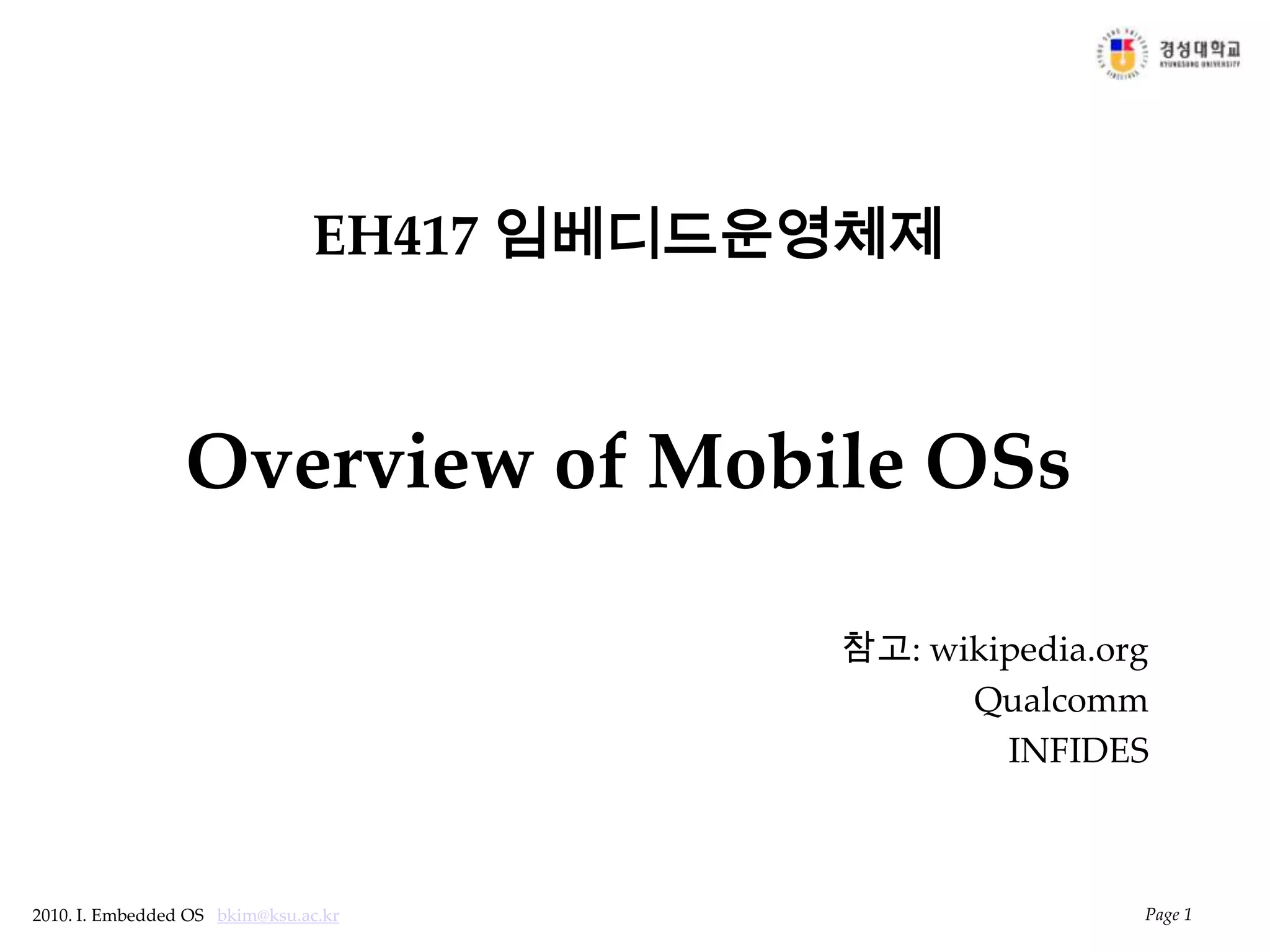 The document provides an overview of various mobile operating systems including Symbian OS, BlackBerry OS, Windows Mobile, iPhone OS, and Android. It discusses their key features and differences. Symbian OS powers most smartphones globally but has limited reach in the US. BlackBerry OS leads the US market but has less global reach than Symbian. Windows Mobile also has a large user base but its next version is late to market. iPhone OS has driven strong growth with its app store ecosystem but apps are restricted to Apple's approval process. Android is new but open source which could accelerate innovation, though demand currently trails iPhone.