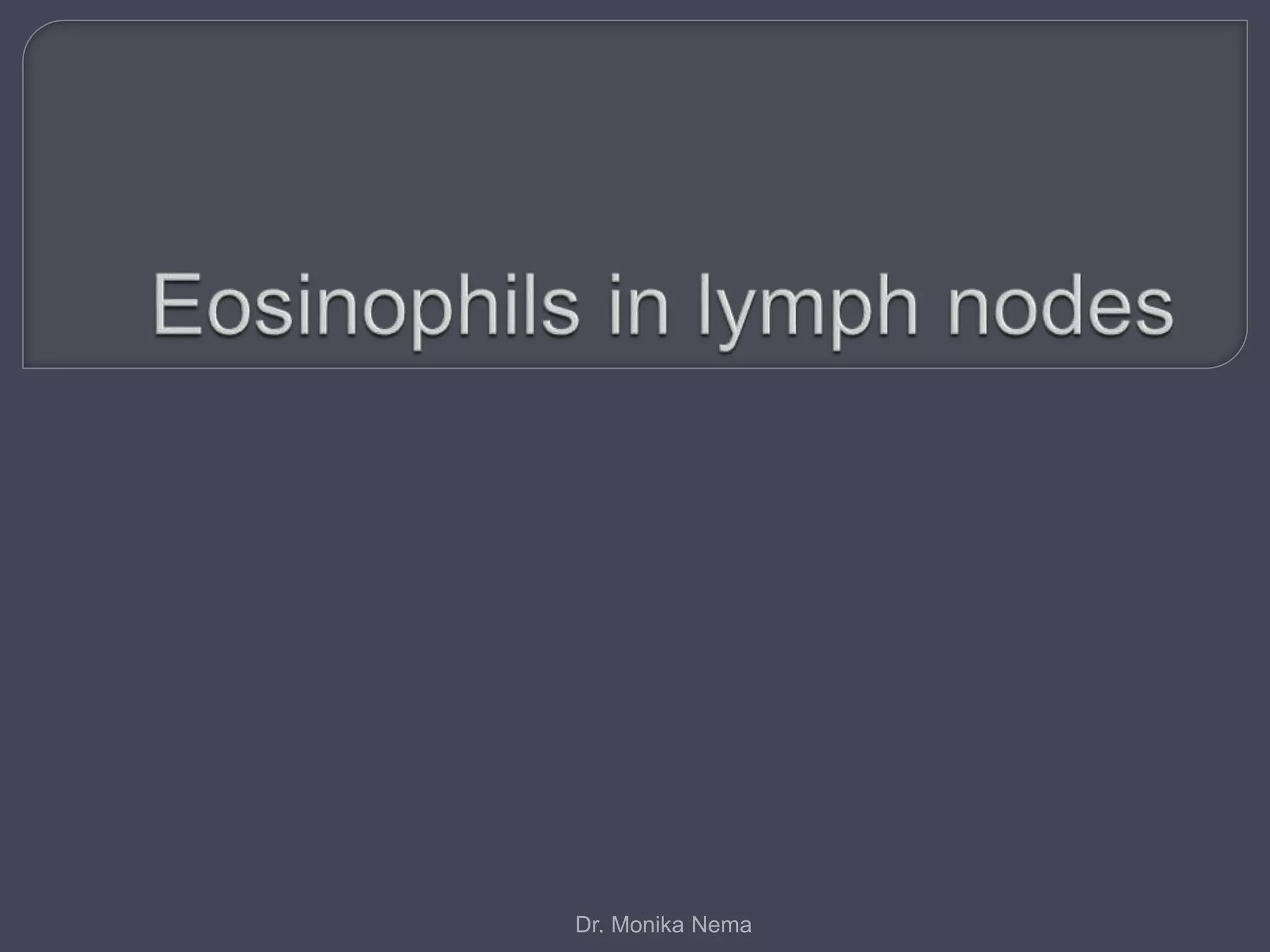 This document discusses various non-neoplastic and neoplastic conditions that can cause lymphadenopathy. It focuses on filariasis as a cause of non-neoplastic lymphadenopathy. Filarial parasites can infect the lymphatics and lymph nodes, causing inflammation and blockage. On pathology, the lymph nodes show an intense inflammatory reaction around dead or dying larvae with eosinophils and multinucleated giant cells. Rarely, microfilaria can be seen embedded in the lymph node tissue. The document emphasizes that a diligent search is needed to identify the parasite and make an accurate diagnosis.