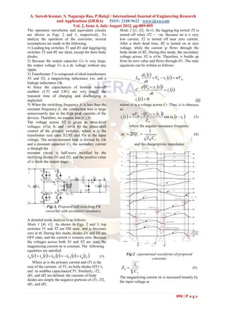 This document proposes a new zero voltage and zero current switching (ZVZCS) full bridge converter to improve performance over existing converters. The proposed circuit utilizes the leakage inductance of the transformer as a secondary resonance without needing an additional inductor. This allows zero voltage switching for leading switches and zero current switching for lagging switches across the entire operating range. The analysis and design considerations of the proposed converter are presented, including conditions for achieving soft switching of all switches.