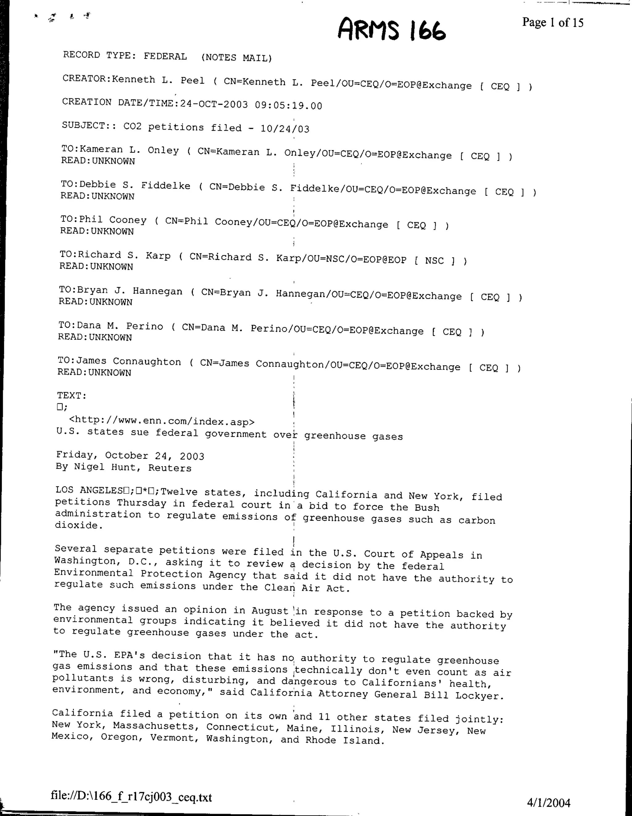Twelve states and three cities filed lawsuits against the EPA challenging its decision not to regulate greenhouse gas emissions such as carbon dioxide under the Clean Air Act. The states argue the EPA has the authority to regulate such emissions based on previous statements and is reversing its position due to pressure from the Bush administration. Environmental groups support the lawsuits, arguing mandatory emission reductions are needed to address global warming, while industry groups oppose expanding the EPA's authority.