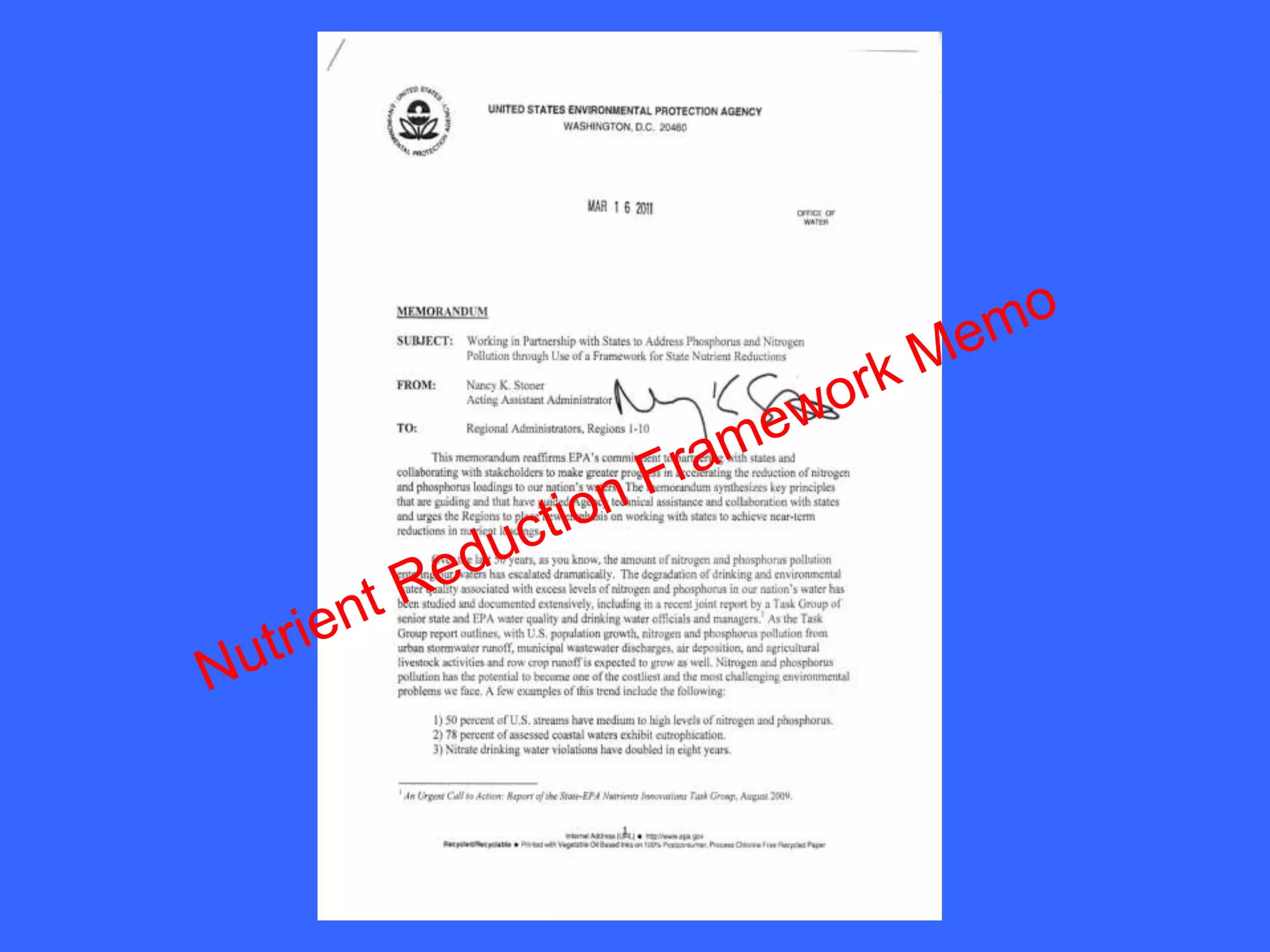 Nutrient pollution significantly degrades aquatic habitats, poses public health risks, and threatens local economies, with over 45% of streams exhibiting high nutrient levels. The EPA is actively addressing this issue by providing technical assistance, funding research, and collaborating with states and agricultural communities on restoration efforts. Key initiatives include the National Water Quality Initiative and various partnerships to reduce nutrient discharges and improve water quality.