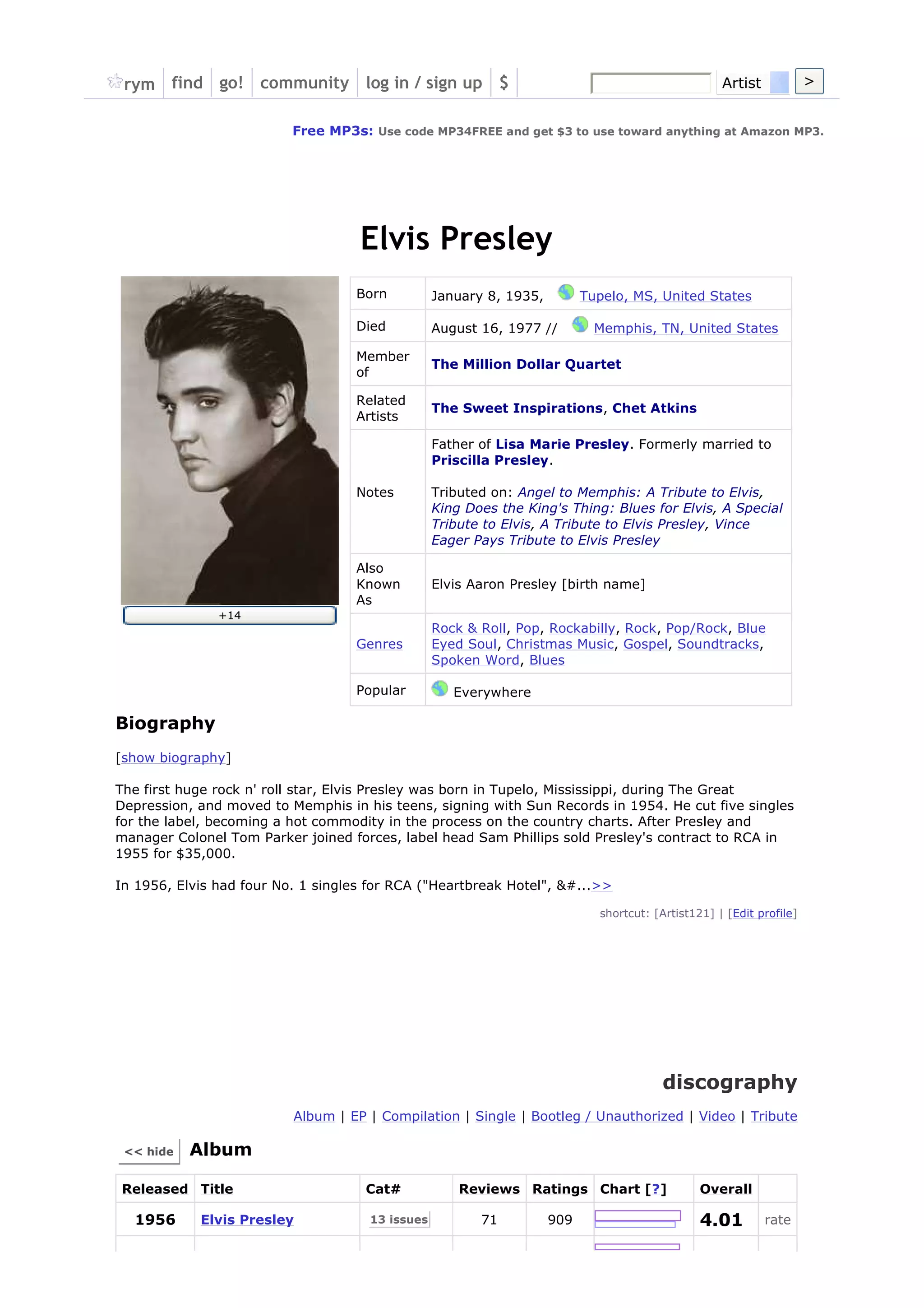 Elvis Presley was the first major rock and roll star. He was born in 1935 in Mississippi and moved to Memphis as a teenager. In the 1950s, he had several number one hits that helped launch rock music into the mainstream. Presley recorded hundreds of songs and sold over 1 billion records worldwide, making him one of the best-selling artists of all time. He died in 1977 at his Graceland estate in Memphis.
